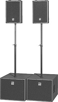 Retours : Système amplifié HK Audio Elias (2 caissons de basse commutables + 4 Bains de pied de 200 watts chacun)